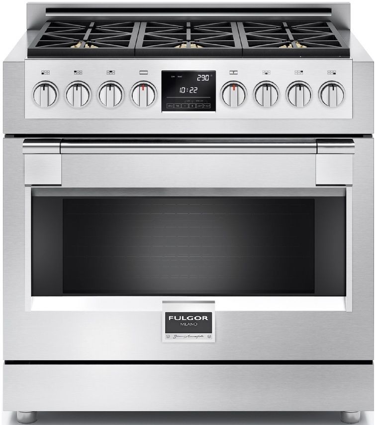 Fulgor Milano® Sofia 600 Series 36" Stainless Steel Pro Style Dual Fuel Range with 4.9 cu. ft capacity, halogen lights and glass windowRead More