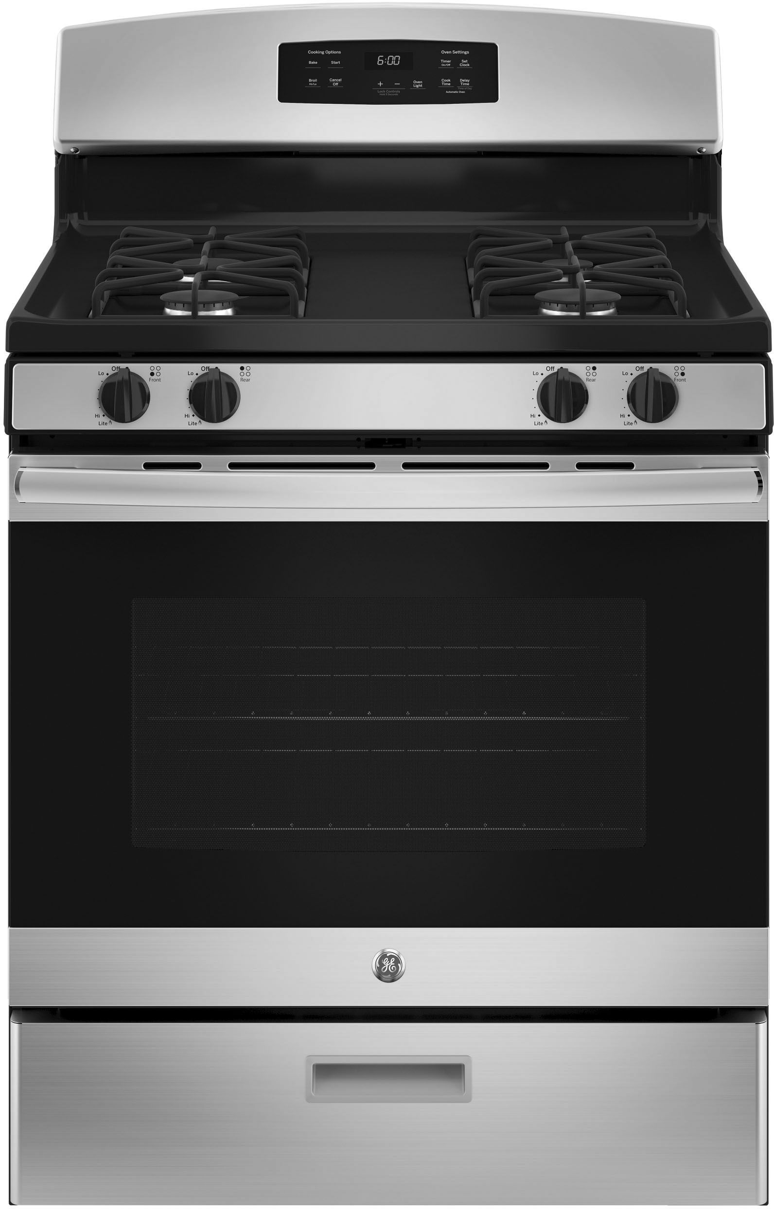 GE® 30" Stainless Steel Free Standing Gas Range with 4.8 cu. ft. total capacity, flexible broiling and sealed cooktop burnersRead More