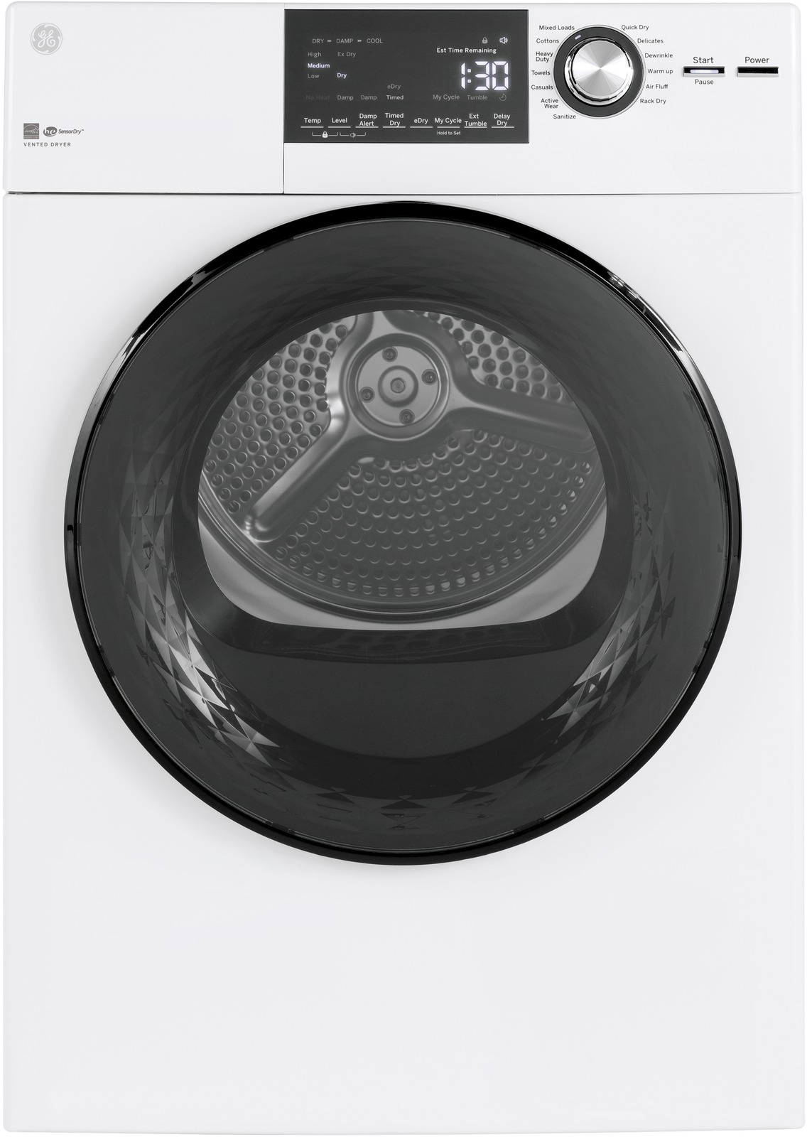 | Dryer Cycles | Active Wear; Air Fluff; Casuals; Cottons; Delicates; Dewrinkle; Heavy Duty; Mixed Loads; Quick Dry; Rack Dry; Sanitize; Towels; Warm Up |