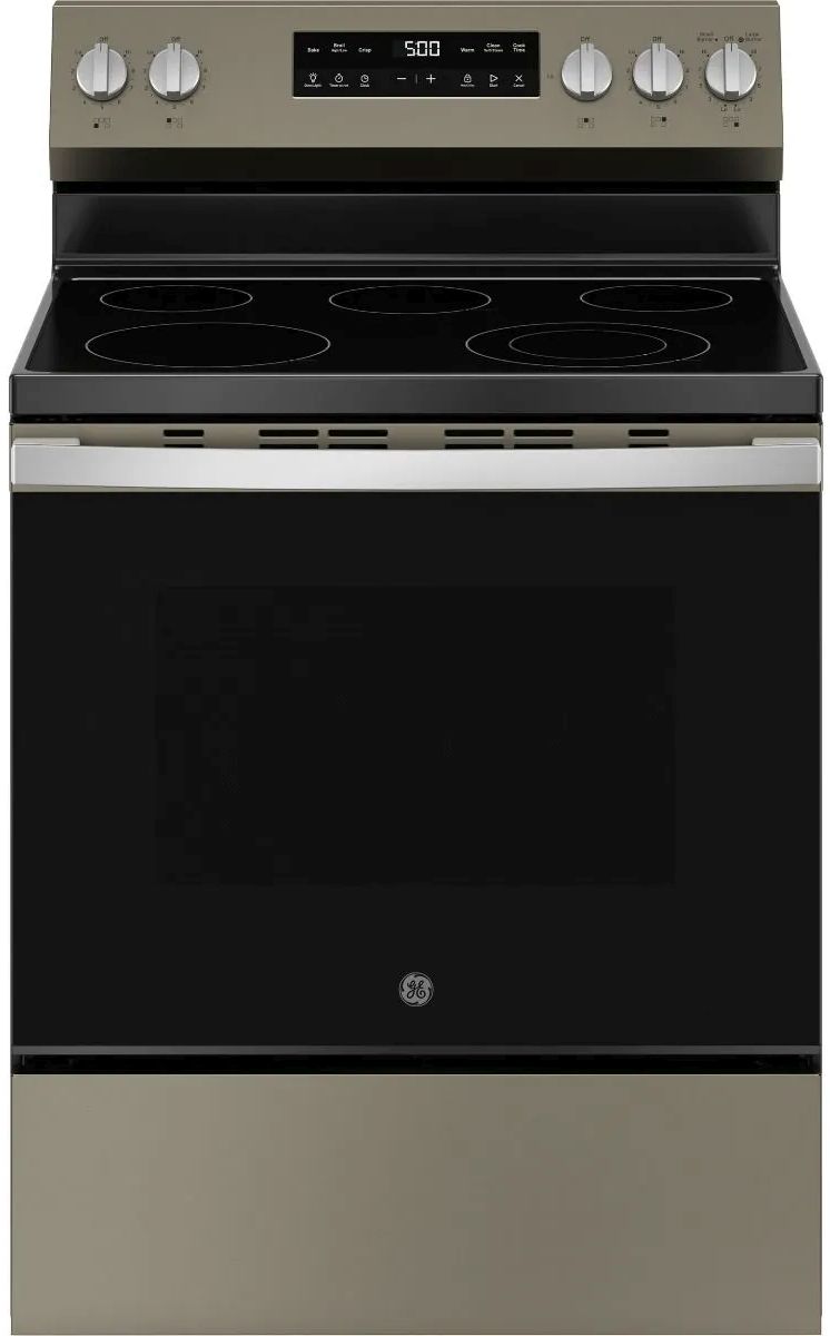 GE® 500 Series 30" Slate Freestanding Electric Range features Crisp Mode, Express Preheat, 5-Burner Radiant Cooktop, Fifth Element Warming Zone, Ceramic Glass Cooktop, Self-Clean with Steam Clean , Dual Element Oven, and Large Capacity Oven.Read More