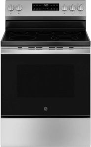 GE® 500 Series 30" Stainless Steel Freestanding Electric Range features Crisp Mode, Express Preheat, 5-Burner Radiant Cooktop, Fifth Element Warming Zone, Ceramic Glass Cooktop, Self-Clean with Steam Clean , Dual Element Oven, and Large Capacity Oven.Read More
