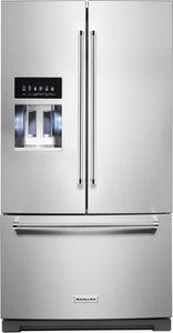This 26.8 cu. ft. french door refrigerator helps fresh produce stay that way with the ExtendFresh™ Temperature Management System. A pull-out tray accommodates large platters with ease, while a FreshChill™ Temperature-Controlled Full-Width Pantry lets you optimize temperature and airflow for the specific food you're storing.Read More