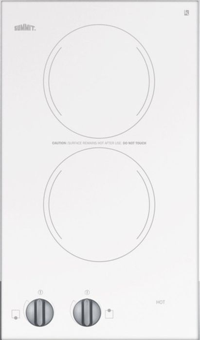SUMMIT CR2110WH is a two-burner 115V electric cooktop that brings outstanding value to kitchen counters. 2 1200W burners, each with 6" diameter, manufactured for SUMMIT by E.G.O. of Germany, considered by many to be the finest in the world. Easy cleanup and elegant style on a smooth ceramic glass surface.Read More