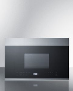 Summit's selection of specialty appliances provides the perfect solutions for completing small kitchens in modern style. The MHOTR24SS is a 24 inch wide over-the-range microwave designed for easy one-touch cooking and effective ventilation. The sleek jet black door is accented by real stainless steel trim, with a small window that lets you keep watch of your cooking. It features a side pocket handle for a more streamlined look to complement any kitchen style. Inside, the MHOTR24SS offers a full 1.34 cu.ft. capacity with an oversized 13.5 inch glass turntable. The controls include a "turntable off" setting, making it easier to heat larger or oddly shaped dishes. Ten power levels and multi-stage cooking options allow you to set the proper conditions for virtually every meal. The defrost option lets you program the microwave for meat, poultry, fish, and bread, while the sensor reheat function includes pre-programmed settings for beverages, dinner plates, pizza, soup, sauce, and casseroles. Sensor cook settings include potatoes, fresh or frozen vegetables, frozen dinner, rice, frozen breakfast, and meat. The MHOTR24SS also includes a popcorn setting and timer. The MHOTR24SS is equipped with a versatile ventilation system that can be set up with a vertical duct, horizontal duct, or for recirculating (ductless) operation. The ventilation controls include a high and low setting to operate at 300 or 190 CFM, with two aluminum mesh filters and a charcoal filter included. LED lighting offers efficient illumination for your cooking surface with two levels of brightness. With its attractive style and convenient size, the MHOTR24SS is the perfect finish for any small kitchen space.