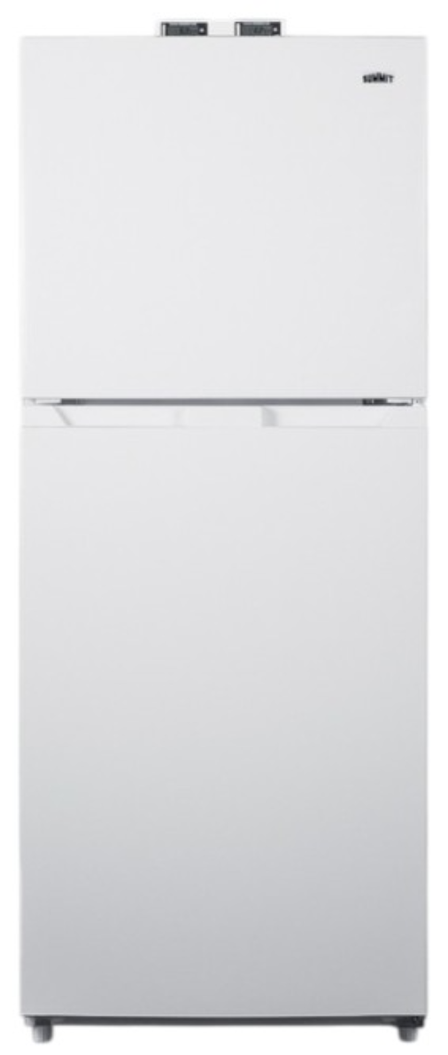 The BKRF1088W is a full-sized refrigerator-freezer specifically designed for use in break rooms and other common areas. The large interior offers 10.1 cu.ft. of storage capacity. A dial thermostat located inside affords easy temperature management, with two NIST-calibrated thermometers externally mounted on top of the unit to provide a temperature readout of the current and high/low temperatures in each section to the nearest tenth of a degree. Temperature can be viewed in Celsius or Fahrenheit for added convenience. Each thermometer includes an audible high/low alarm function to warn users if the refrigerator or freezer section exceeds the specified temperature range.