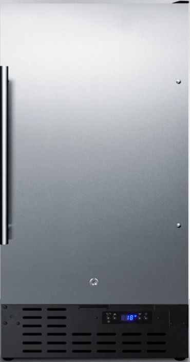 SUMMIT brings true convenience to small kitchen spaces with the SCFF1842SS, an 18" wide fully frost-free all-freezer. SCFF1842SS is front-breathing for built-in use under counters, but also features a fully finished cabinet to allow freestanding use. The reversible stainless steel wrapped door includes a factory installed lock and professional handle. This unit comes with a black cabinet and sealed back. Inside, the SCFF1842SS is fully frost-free to minimize user maintenance, with slide-out chrome shelves that can be adjusted to accommodate a variety of items in the 2.7 cu.ft. interior. This unit includes a digital thermostat for easy and intuitive temperature control. With a uniquely slim size and user-friendly features, the SCFF1842SS is the ideal freezer for space-challenged spaces. This model meets UL-471 standards.