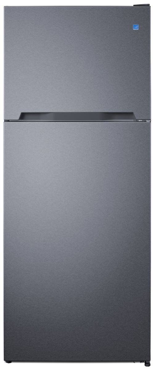 The ENERGY STAR certified CTR15SS is a top mount refrigerator-refrigerator that offers a spacious 14.3 cu.ft. of storage capacity in a popular 28" fit. The stainless steel doors feature a horizontal grain and pocket handle for a clean look, with a color-matched smooth cabinet finish. The sealed back design ensures easier cleanup. The doors are user-reversible to best suit your space.