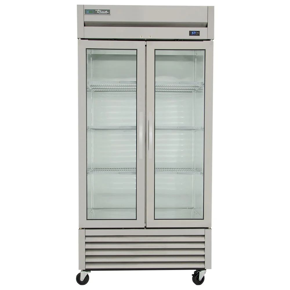 The True T-35G-HC~FGD01 two-section reach-in refrigerator has a durable exterior made of stainless steel and anodized aluminum. To ease cleaning, the interior has a stainless steel floor with coved corners, and the cabinet has foamed-in-place polyurethane insulation to help with cold air retention, as well as stability. Two double-pane thermal glass doors provide visibility into the cabinet, while locks come standard to prevent unauthorized access and protect products.Read More
