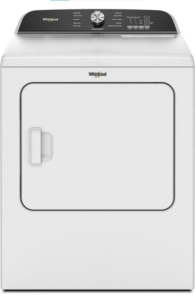This Whirlpool® 7.0 cu. ft. Top Load Dryer uses Moisture Sensing to help prevent overdrying by stopping the load at just the right time and features an Air Only Cycle that tumbles your items without using heat.Read More